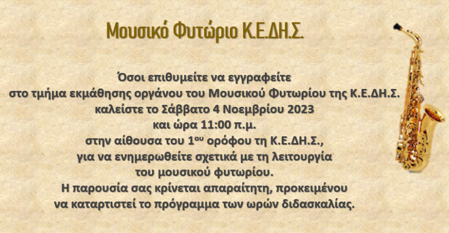 Πρώτη ενημερωτική συνάντηση του Τμήματος Εκμάθησης Οργάνου του Μουσικού Φυτωρίου της Κ.Ε.ΔΗ.Σ.